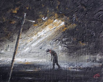 sinking into ashen sand